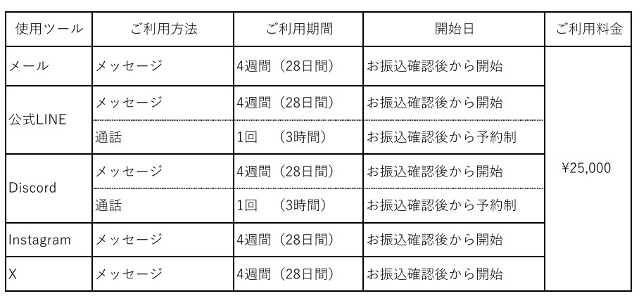 ・完全前払い制・相談者様のご都合による延長不可・キャンセル料は利用規約に記載のとおりです